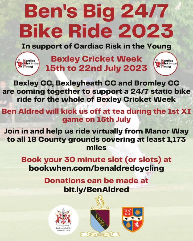 CRY’s representative, Paul Daniels (who lost his son Ben in 2011, an Old Elthamians Cricket Club player aged 15, to a heart attack) will be present when Ben launches the ride in the tea interval.