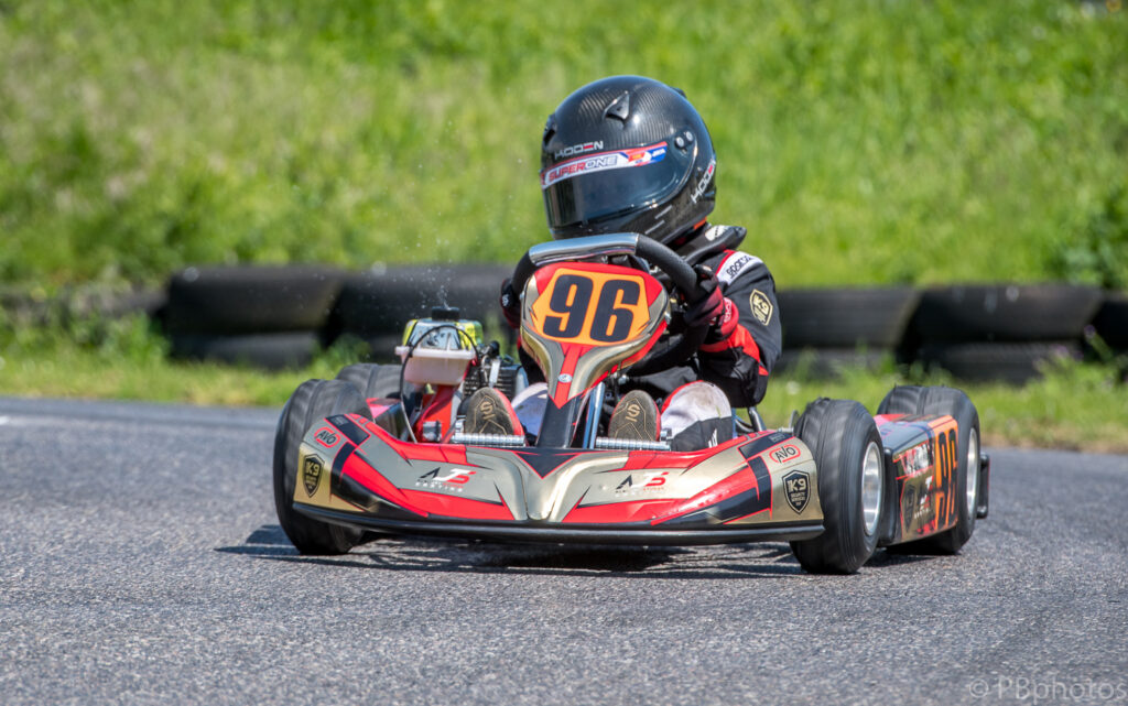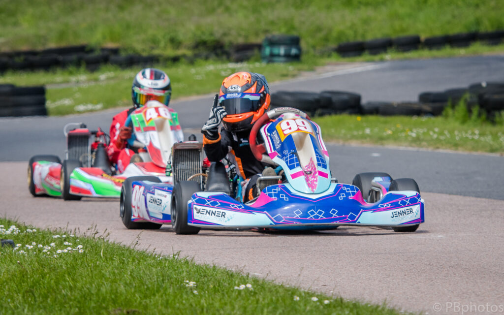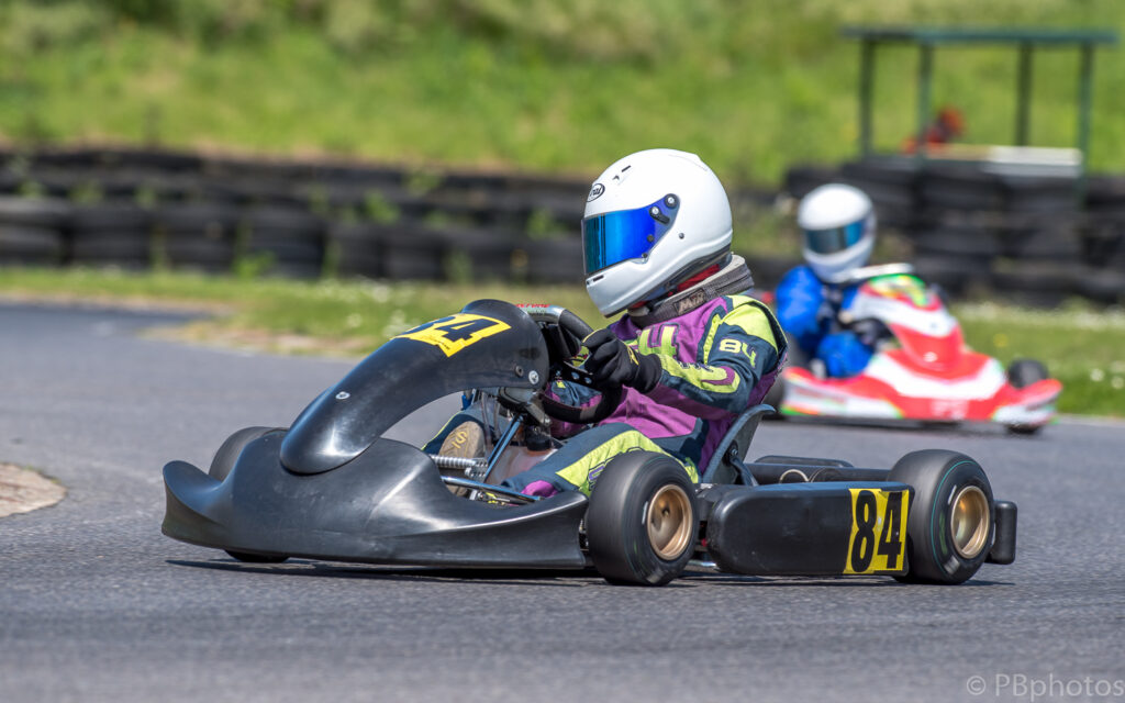 Following on from the two Inter drivers was the Junior Club Max class which had 17 entries this month. Fletcher Jamieson and Oscar O’Sullivan topped the pre final, with the former looking very assertive as he wrestled the lead away from pole man’s O’Sullivan after 3 laps in the morning’s heat, before taking the pre final win.