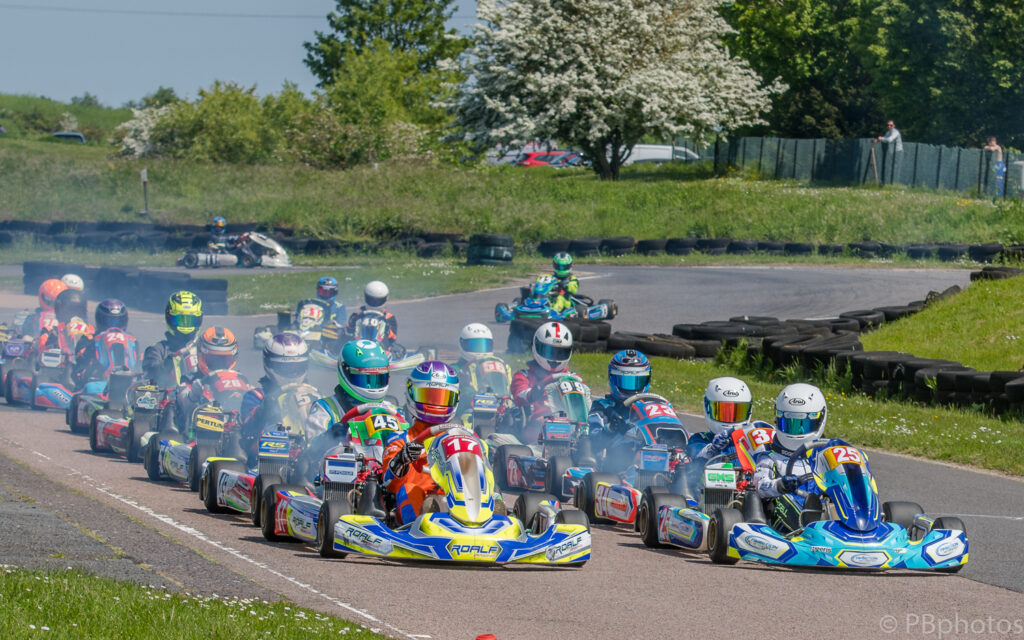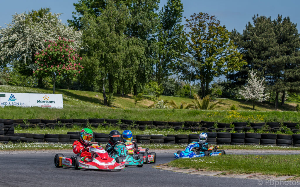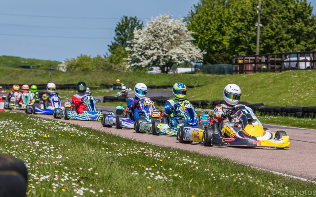 Antony Parfett was following on from his brother’s strong showing in the Senior class to line up 3rd on the grid, he had Kristian Stefanov going well alongside him in 4th. Jack Theobald and Felix Stolkin completed the 3rd row of the grid, Alfy Hemingway and William Murphy the 4th.