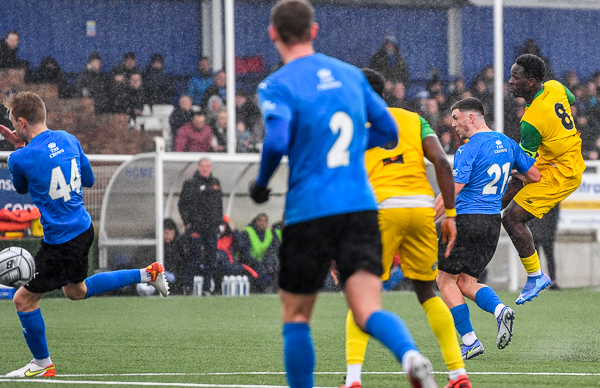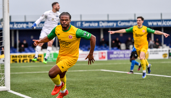 The pressure told when Welling gave the ball away in a dangerous place and Kristian Campbell fouled his man with a desperate tackle earning him a yellow card. Toby Stevenson whipped in a free kick and Femi Akinwande reacted to poking it home from close range.