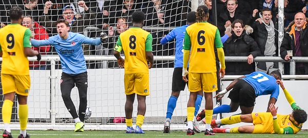 Another Welling substitute, Ben Allen, then showed his composure and unselfishness to create the second equaliser. Stevenson sent him clear down the right and as Oualah burst out to meet him, he squared for Dipo Akinyemi to tuck into the open net from the edge of the penalty area.