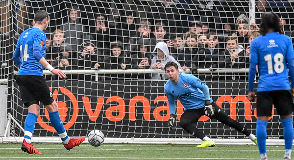 Another ball given away in midfield led to the Blues going back ahead. Dylan Gavin broke away, but Statham made a great block. It came out to Akinwande wide in the penalty area and a rash challenge resulted in a penalty being awarded to the hosts. Halford, who has twenty-eight Premier League appearances to his name, showed all his experience by sending Sims the wrong way from the spot.