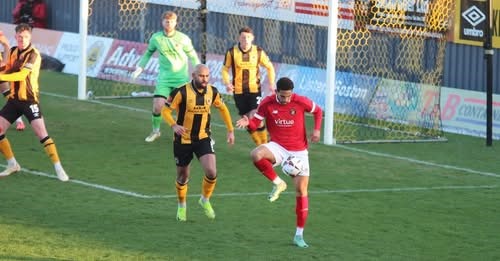 Osborne and Weston swapped roles four minutes later as Boston countered again. Osborne’s pass got through the Fleet defence but Weston sent it over the bar as he slid in to attack the ball. Then when Alex Aoraha felled Weston on the edge of the Fleet area, Cousins got down smartly to save well on 76 minutes after seeing Cameron Green’s free-kick late.