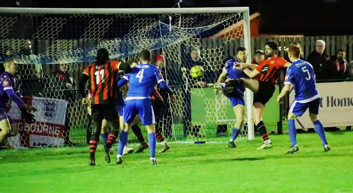 After an even start where the home side showed just how they had matched the Brickies recent form winning six in a row, Broadbridge gave Ryan Maxwell’s side a real wakeup call inside nine minutes as, from a corner, a bullet header crashed off the visitor’s cross bar, and Peters reacted quickest to force the ball over the line. It was the first time indeed that Sittingbourne had trailed in a League fixture since going 2-1 behind at Beckenham on October 12.