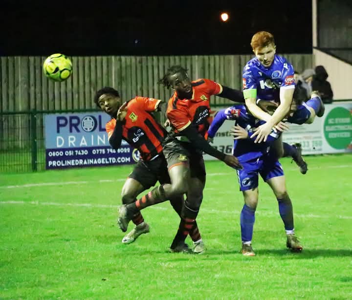 The home side were back in front instantly after the break courtesy of a Mason Doughty 25-yard screamer before Jack Steventon continued a remarkable recent scoring run with the central defender equalising as he turned home a Boachie cross. The game was won seven minutes from time when full back Liam Smith hit a sensational angled drive from Henry Sinai’s magnificent ball to send the travelling Brickies behind the goal wild with delight as their heroes won League game number fifteen in a row since a draw at Sevenoaks in mid-October!