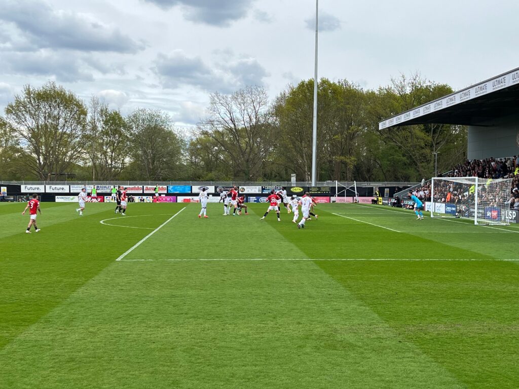 Cheered on by their vocal travelling support who snag all game, the visitors first chance came when Ben Tollitt crossed for Paul Lewis whose glancing header was saved by Grant Smith. Imray then went close for Andy Woodman’s side with a run from his own half, but his shot was blocked by the advancing Burgoyne.