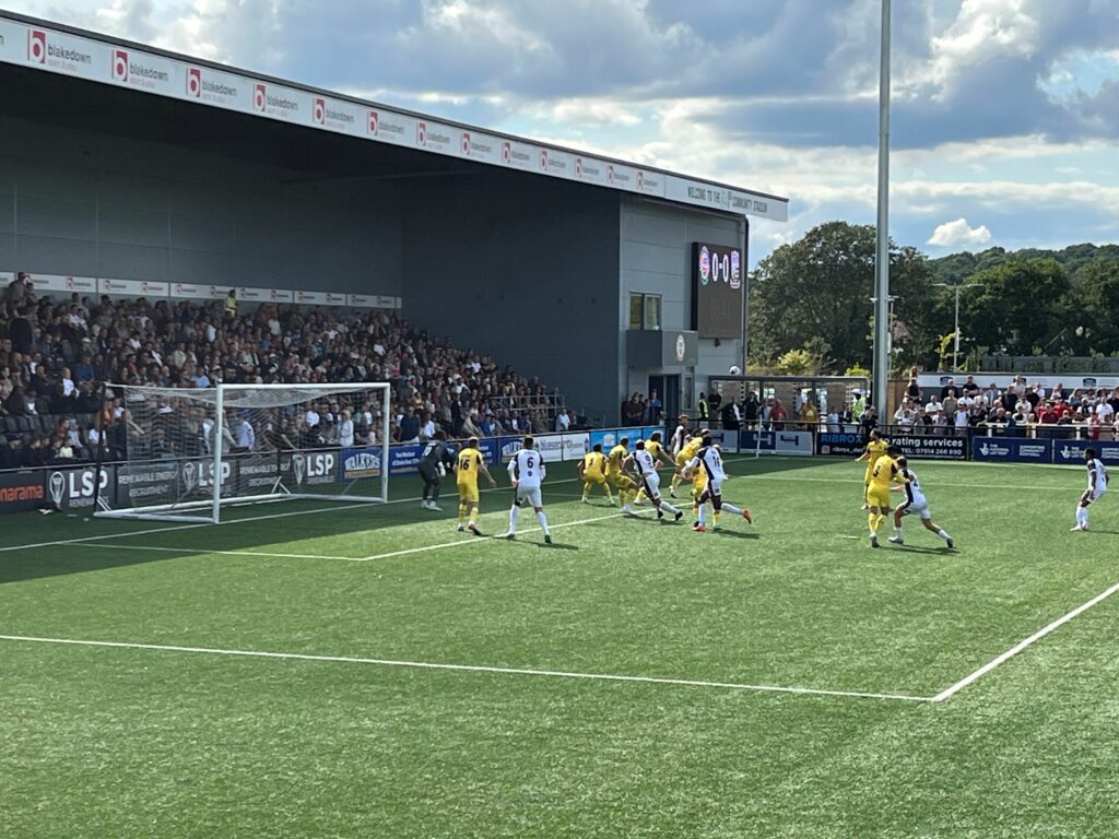 The start of the second half was delayed due to a broken corner flag, but once it got going Bromley started well with Ben Krauhaus curling an effort narrowly wide.