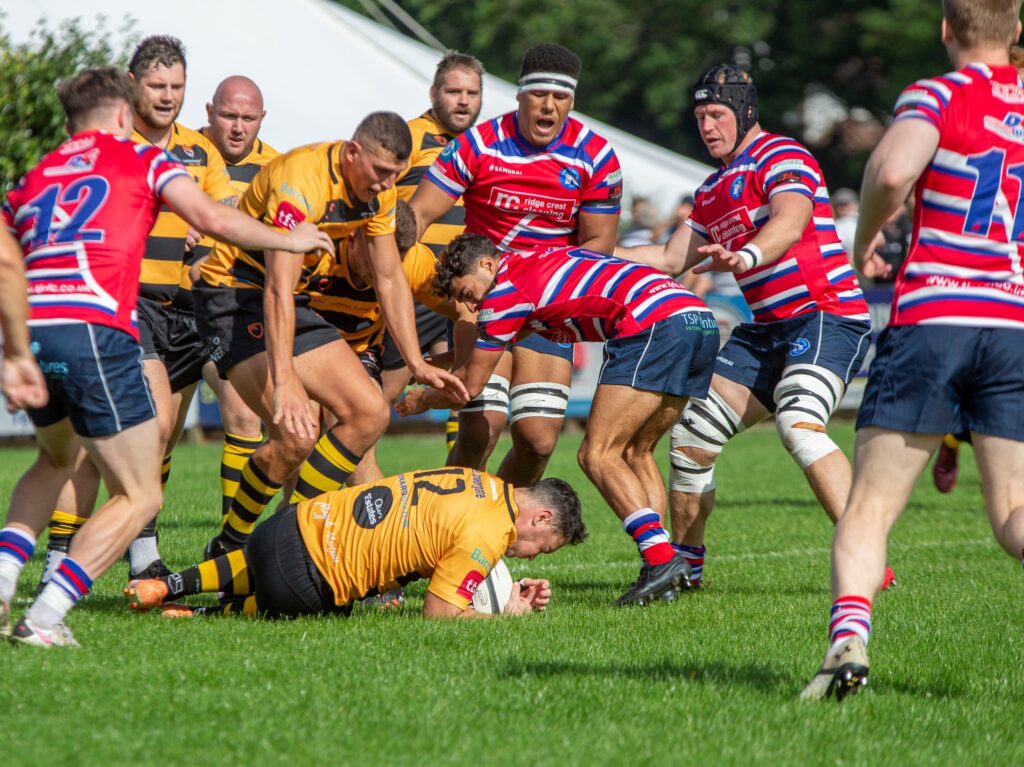 An absorbing National 2 East game produced twelve tries and Canterbury, after conceding an earlyscore to Josh Groocock, rattled in four in the first half hour.