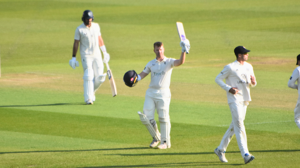 Compton brought up his hundred when he drove Tom Price for four and didn’t really offer a chance until he edged Charlesworth between Bracey and first slip when he was already on 131.