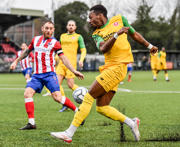 In a sometimes heated match, Welling went ahead in the first thirty seconds but it only took the hosts four minutes to level after which, they rarely looked troubled.