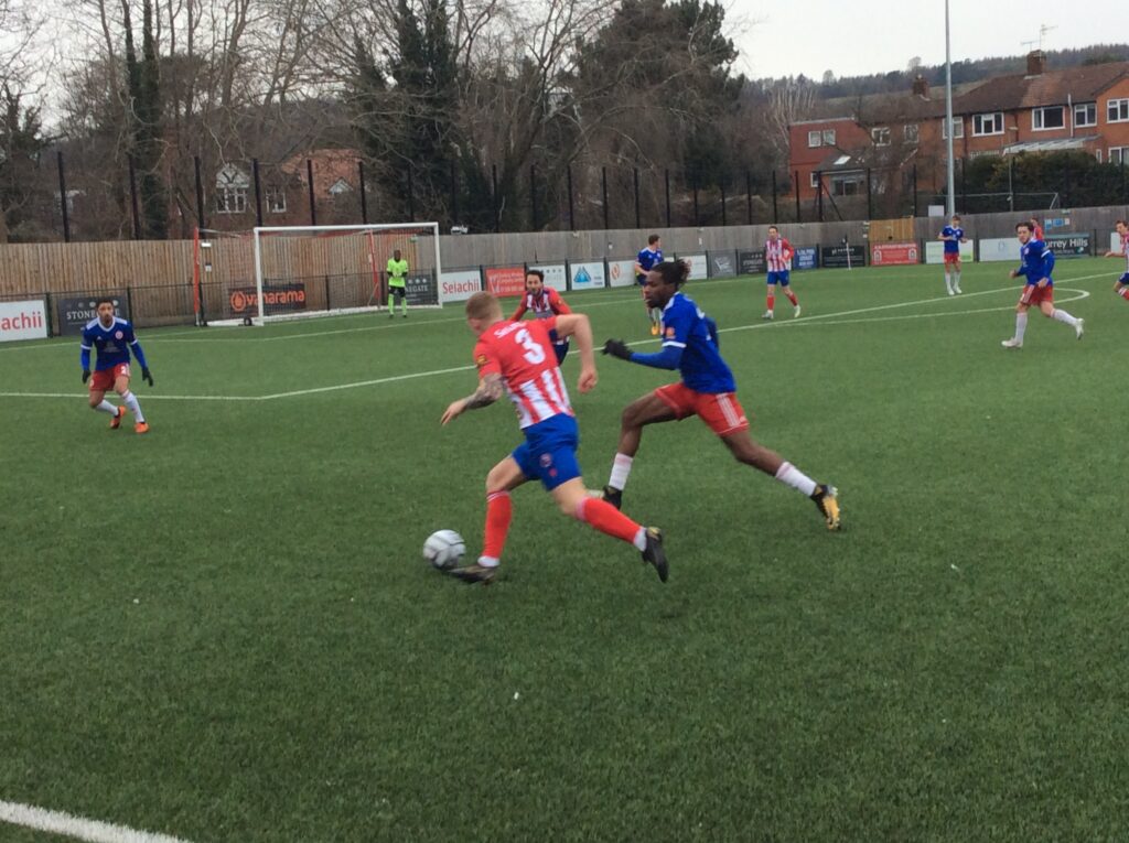 Kristian Campbell let fly from twenty five yards but it was half blocked for Lewis Carey to claim and soon after Dorking went ahead. James McShane got in behind and pulled it back for Alfie Rutherford to fire home under Reice Charles-Cook.