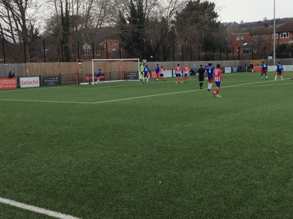 Deep into injury time, it could have been six for Dorking when Rutherford was off target from Luke Moore’s through ball. The referee put the Wings out of their misery moments later.