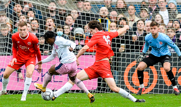 Shokunbi was sent clear but Grainger came out to save superbly then Muscatt shot over on the turn and was hit late but the referee too no action. Akinyemi drew another good save out of Grainger before Dulwich had one last chance but Deon Moore headed over from an Andre Blackman cross although, again, Sims appeared to have it covered.