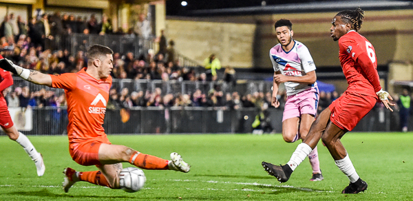 Ade Shokunbi was off target when Welling broke however the hosts were soon on the attack again and moved it around well but Arthur Penney stood up well to turn Higgs’ shot past the post.