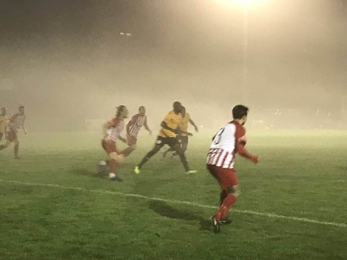 With the mist drifting in from the marshes, there was an eerie feel as the players came out for the first half. We made two changes to the starting line-up from Saturday, with Finn ‘O’Mara coming in for Josh Vincent, who hadn’t recovered from the injury he received on Saturday, although there was good news when Ronnie Dolan was named in the starting line-up having recovered from his knock, whilst in midfield, Scott Heard replaced Ian Draycott. Our opponents made three changes to the side that lost 3-2 at Worthing on Saturday, goalkeeper Chiedozie Nwosu came in for Arthur Janata, defender Ben Wyss replaced Fahad Nazor, who was on the bench, and midfielder Samuel Owusu played in place of Fahad Nazor, who was also one of the named substitutes.