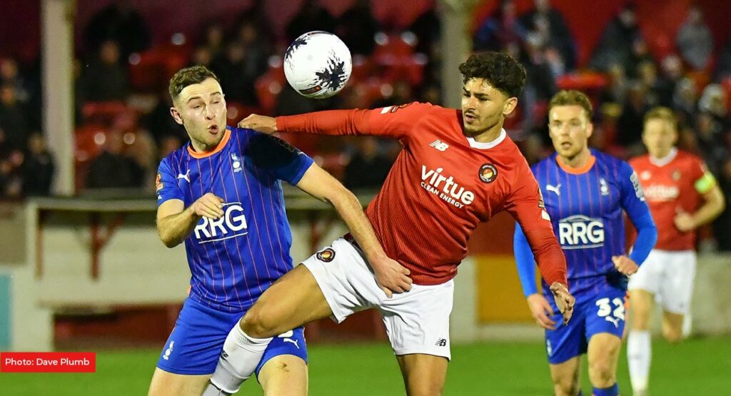 Fleet were next in line to an opener. Rakish Bingham squared a ball towards Ouss Cissé whose shot was blocked by the Oldham defence. Dominic Poleon had a chance for himself moments later when he latched on to a Luke O’Neill long ball but the Fleet forward steered his shot wide.