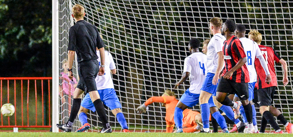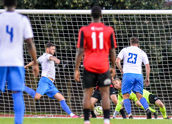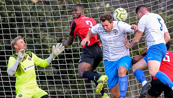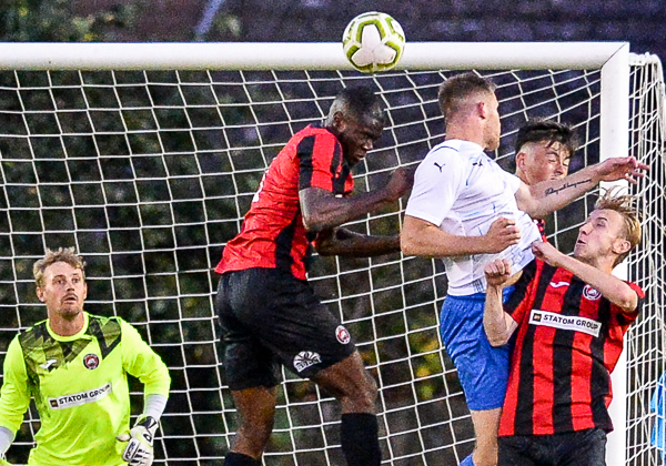 Stefan Wright then had a long throw deflected into the side netting but from the corner, Sevenoaks scored. Tommy Cooney delivered and Joe Tennant headed home.