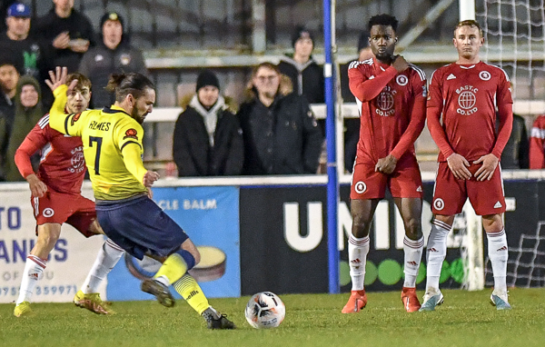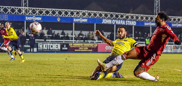 Four minutes after the break Ade Azeez had to be withdrawn and replaced by Aaron Barnes but it didn’t stop Welling from growing into the game. Rob Howard had a shot deflected wide before Anthony Papadopoulos sent Payne through but his effort with the outside of his boot flew wide.