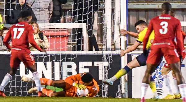 In the opening exchanges Myles Roberts made an outstanding save from Harry Parsons unaware that the offside flag was up before Selim Saled almost got in behind but was crowded out and unable to get a shot away.