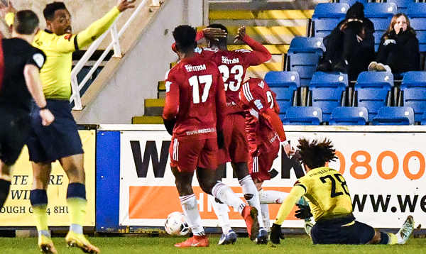 Farnborough: Turner, Ball, Grant, Fearn, Page, Lokko, Holmes (Lawless 74), Silva (Saunders 63), Parsons (Kandi 73), Norville-Williams, Saled.