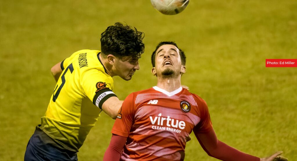 It seemed that most of Farnborough’s attacks were being blunted by the Fleet back line as home fans made for the exits. But deep into added time, a hooked clearance bounced for the impressive Selim Saied to turn Sido Jombati. His one-two with Harry Parsons produced a great one-handed save from Cousins but it fell kindly for the onrushing Chike Kandi to turn home.