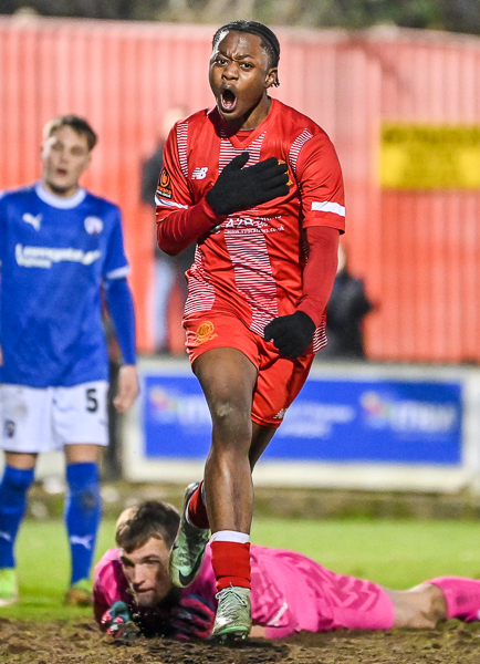 Much was made of the fact that the Spireites played a youthful team, as winning the National League and gaining promotion is their priority, however it was two young Welling players who grabbed the headlines. Enoch Muwonge, who only started due to the eleventh hour withdrawal of Adam Roscrow, scored Welling’s second after seventeen year old strike partner David Kamara had opened the scoring just after half time. The Wings’ reward for progression is a home game with Barnet.