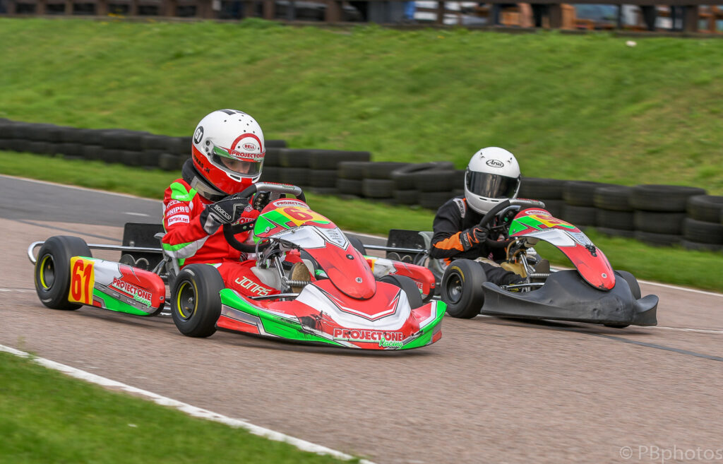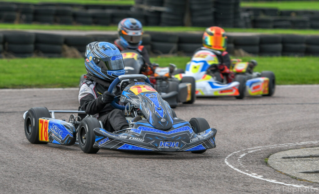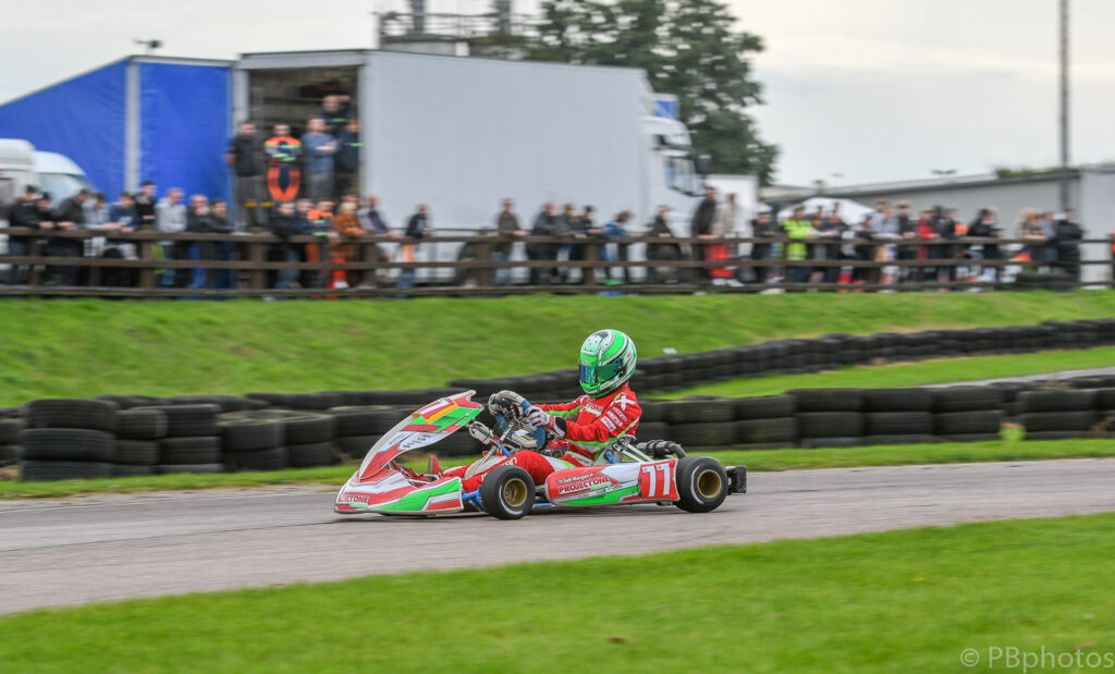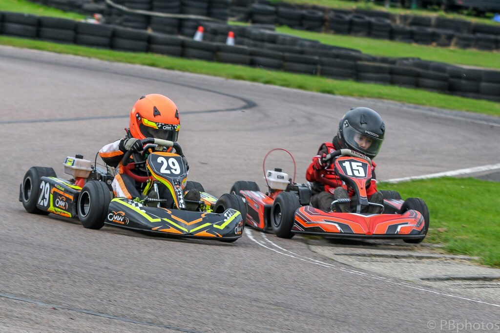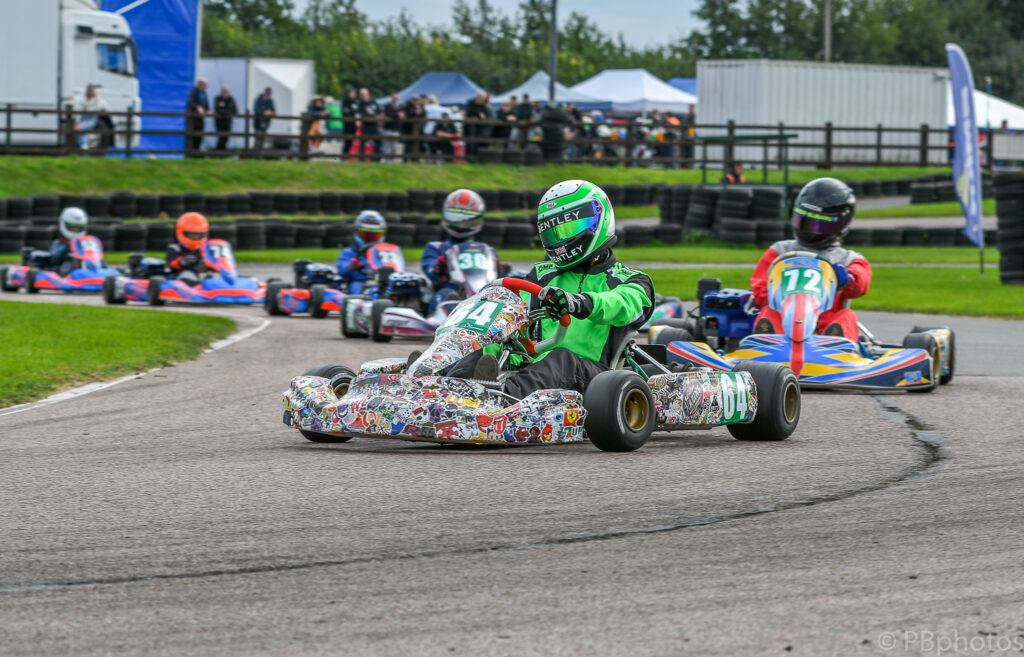 The two qualifying races for the Junior Subaru class provided plenty of drama, with Liam Thomas and Bentley Lovegrove-Fowler coming together early on in the morning’s heat, with an incident that had Thomas’s kart delicately balanced on his rival, which lasted virtually from the exit of turn 1 all the way down to turn 2 ! Unfortunately for Ryan Dell this proved to be the end of his day’s racing, as he got caught up in the pair’s shenanigans damaging his kart’s chassis beyond immediate repair.