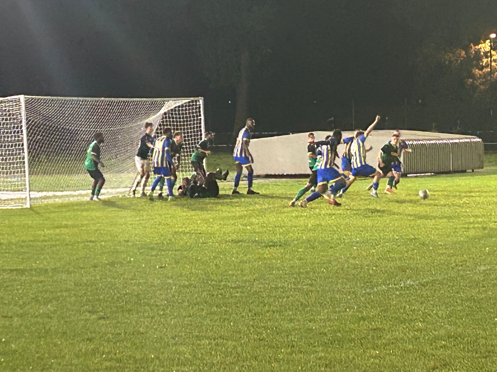 Four minutes later, Thamesmead reduced the arrears. A long throw was half cleared to Bachi Bari whose half volley on the turn flew into the top corner.