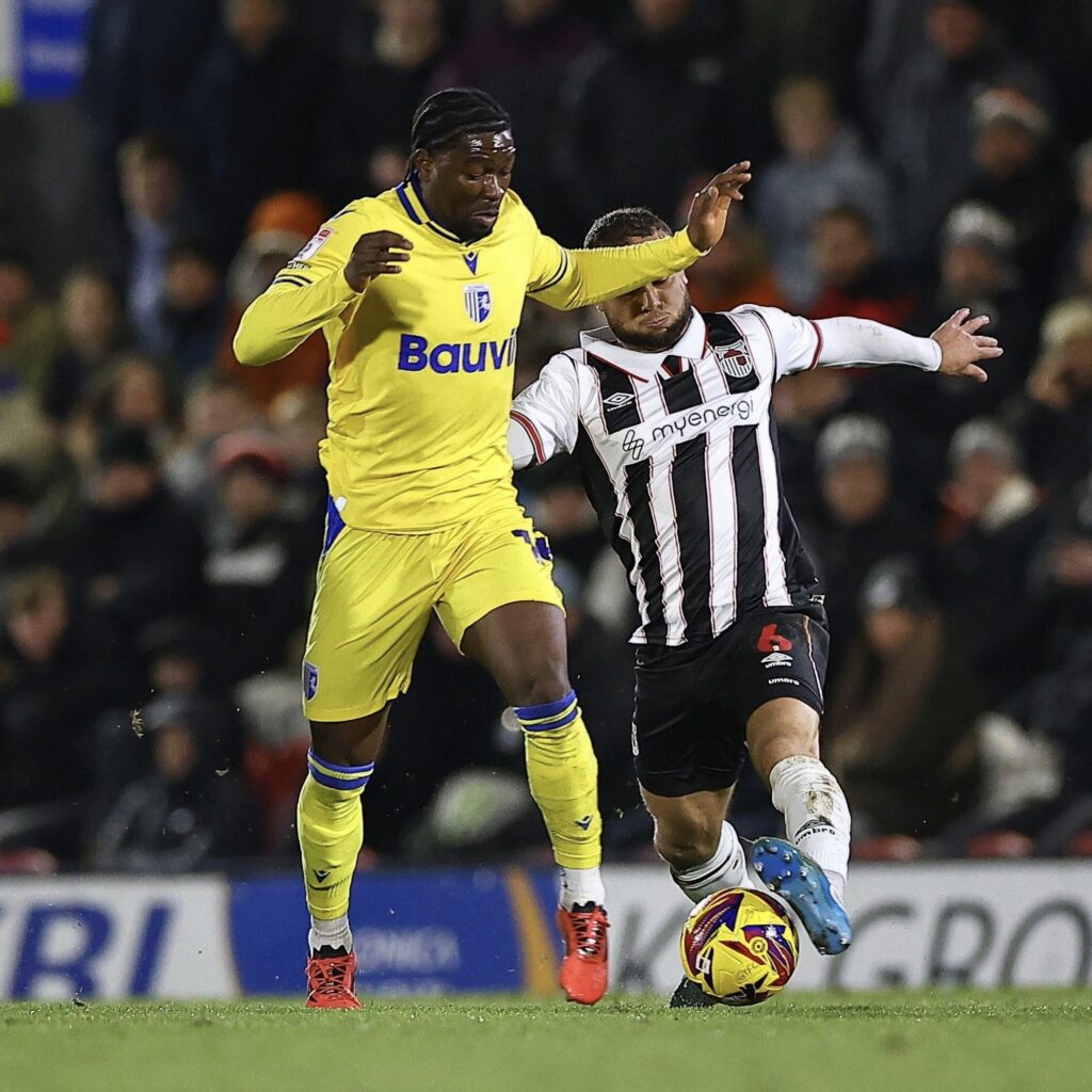 Grimsby started the brighter with Kieran Green shooting over from the game’s first chance. Gbode had the Gills first opportunity but wasn’t able to convert a ball from Agbinone, but the game wasn’t a classic as both sides strove to get an advantage.