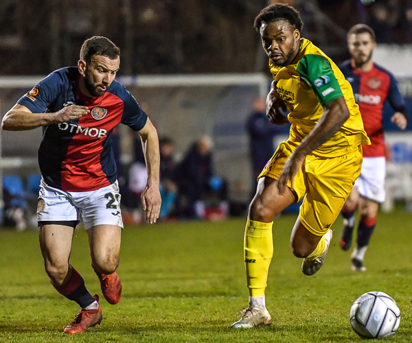 Having defended them well, Welling again created a good chance when Stevenson played in Ben Allen and he chested it down well, but his shot was well saved by former Welling goalkeeper Reiss Charles-Cook. It came out to Dipo Akinyemi, but he couldn’t get it where he wanted to get a shot away and the chance was gone.