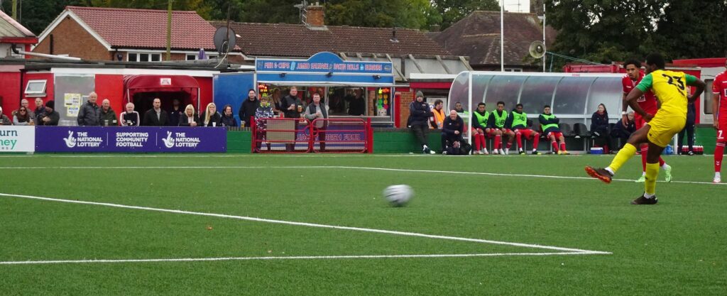Against the run of play, Welling equalised via a penalty. A rare corner was scuffed in the direction of Olu Durojaiye who was taken out by a Hemel Hempstead defender. Daniel Carr waited for the goalkeeper to commit to diving to the left of the goal and then slotted the ball in the opposite corner.