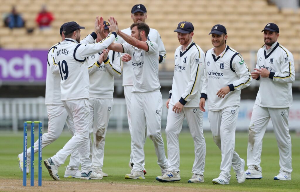 The visitors’ first innings was cut down by a superb collective effort by the Bears’ seam attack. All five seamers took wickets as Hassan Ali led the way with three for 36 and England’s Chris Woakes picked up two wickets in his first championship match for 19 months,