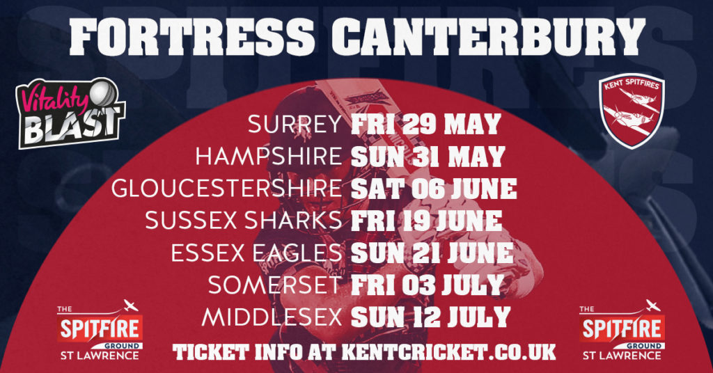 Vitality Blast action returns to Canterbury this Summer, with all of Kent Spitfires’ home matches to be played at The Spitfire Ground, St. Lawrence in the City.