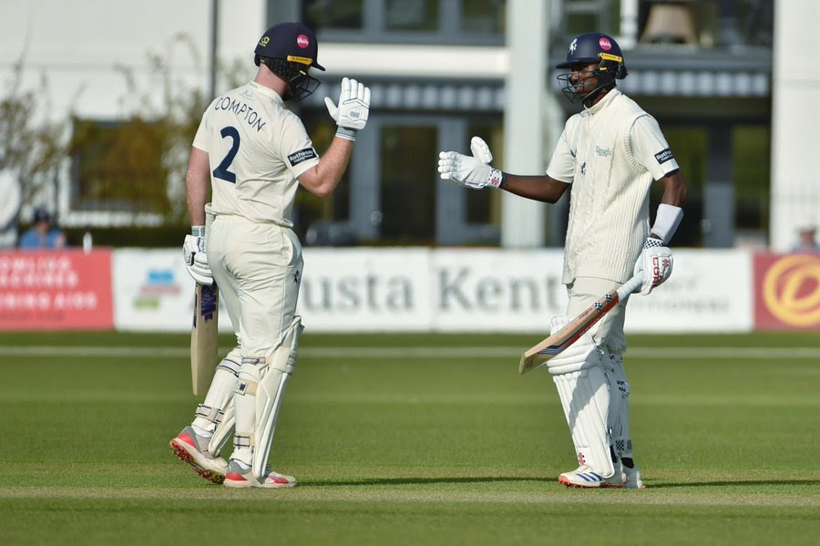 Kent’s Tawanda Muyeye said: “I think the game was in the balance wen we went into bat but I think Zak’s start was unreal with Compo and that obviously gave us the foundations. I came in, was pretty calm and pretty happy to go about my innings and bounce off Compo, who batted outstandingly and let me by myself.