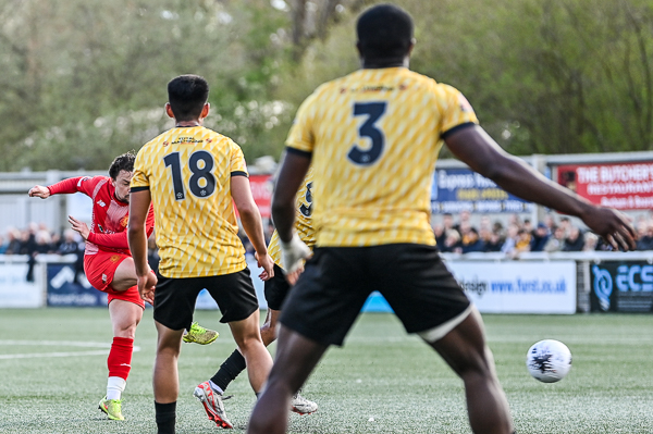 Rod Stringer, the Welling manager, reacted by taking off Joe Ellul and bringing on David Amoo, changing the shape to try and arrest the pressure. Almost immediately, Welling had their first effort when Antony Papadopoulos drilled an effort past the post.