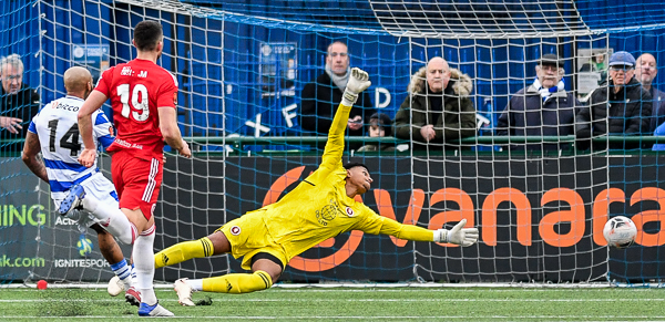However, Welling were given a potential lifeline midway through the second half when they were awarded a penalty. Payne was brought down by Coyle and referee Ross Martin pointed to the spot. The normally reliable Maloney stepped up but Kanuric went the right way and made the save.