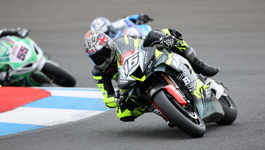 Race one on Saturday is always the shorter “Sprint” race but with Knockhill being such as short lap it was still going to be 22 laps around this physically demanding little circuit. When the lights went out, I got a decent start and settled in to the battle for 16th with a big group of riders but then I lost a bit of pace in the middle part of the race and lost the tow from the group but enjoyed a great scrap with Harrison and Takahashi to finish 23rd.