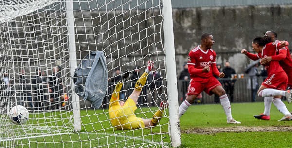 Storm Dennis and all that Dulwich could throw at them could not stop Welling’s progress as they claimed a well warranted victory. After the game, Quinton was delighted. He said “I thought the boys were tremendous. We should have scored two or three more in the second half but I’m over the moon with that result in conditions like that. Where we are in the league now, you never know. You never know.”