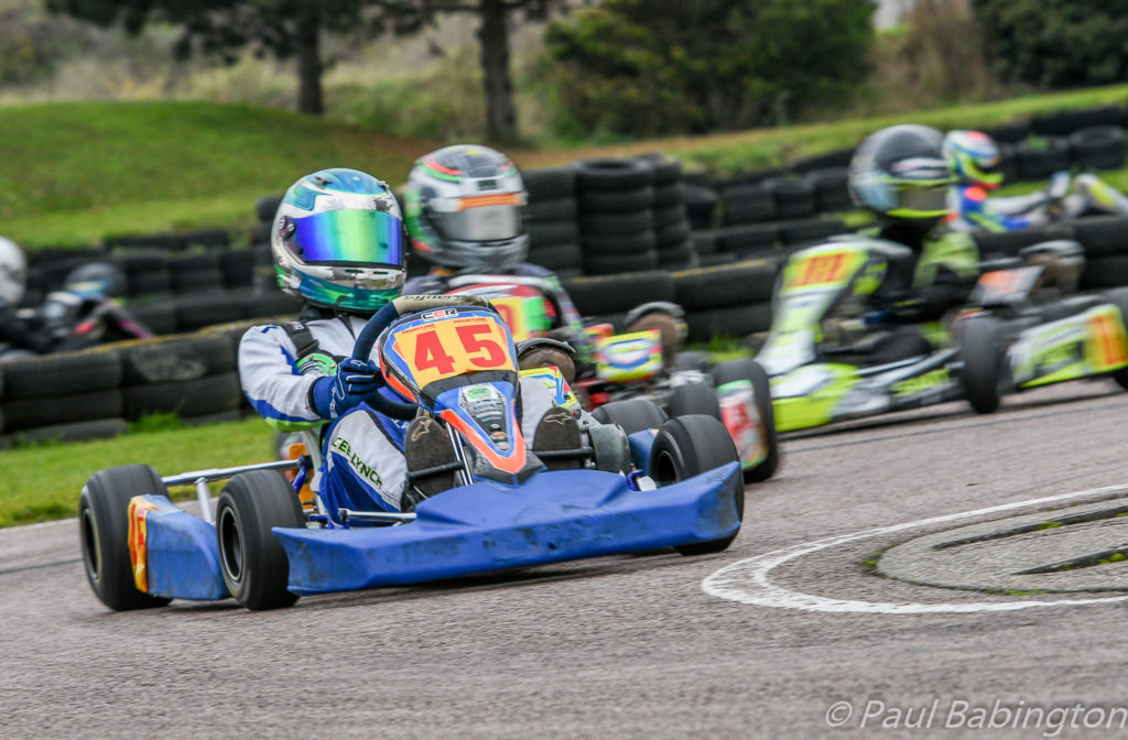 Carrying the prestigious number 1 on his kart was Harry Freeman, after an outstanding year in the national championship; he topped the morning’s practice and 1st timed run, with a best lap of 1:02.68s. Noah Baglin and Alfie Mew worked together during the 2nd run which paid off for Baglin, as he set a time of 1:02.03s to top the eight drivers, with Mew 2nd and Freeman 3rd. For the third and final run Alfie Mew scorched around in a 1:01.78s to take not only the fastest time of the run but also of the day.