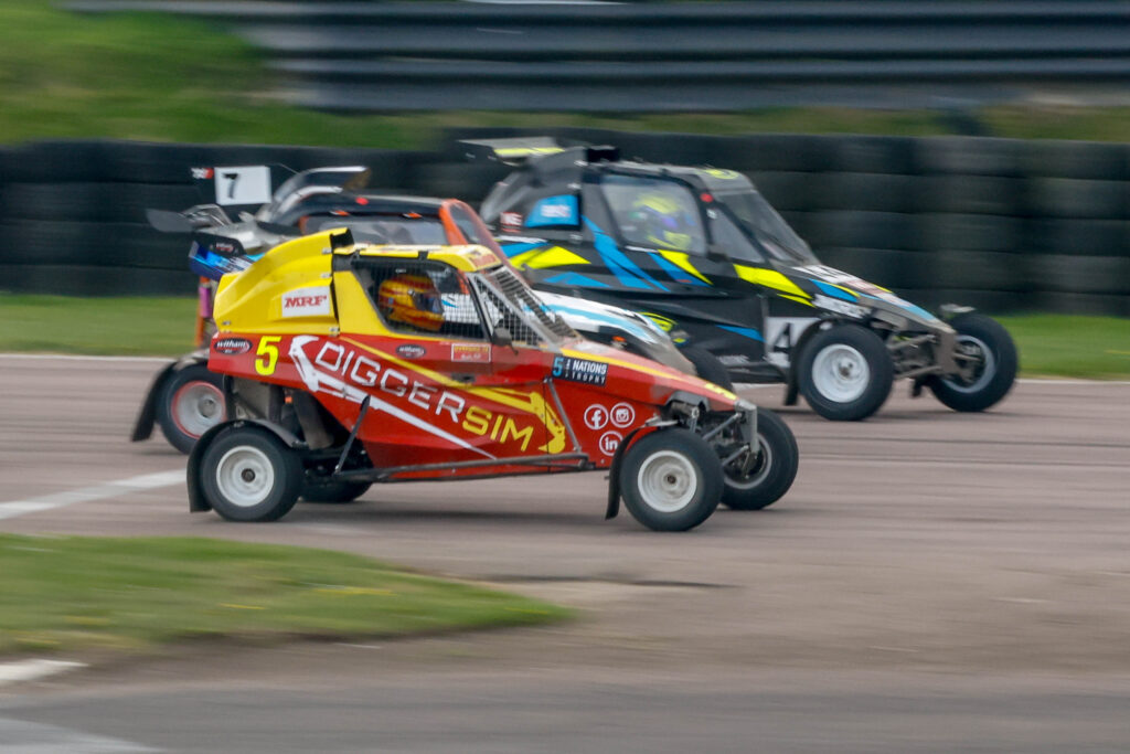 In fact recording a 4th place on the Saturday and then claiming his maiden podium finish on the Monday putting his Digger Sim Mygale XC04 Cross Car on the third step of the podium! This also sees him in a strong third place in the championship.