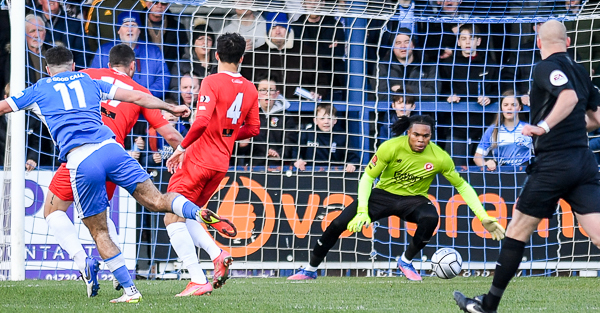 Wood had the first chance but shot wide before he opened the scoring just before the fifteen minute mark. Joe Turner strode through the middle of the Welling defence and shot, Coniah Boyce-Clarke got down and palmed it onto the post, and Wood was quickest to the rebound to tuck home.