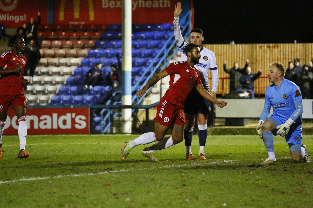 The Welling defence had to scramble a clearance, and it fell to Pendlebury who smashed it home from the edge of the penalty area.