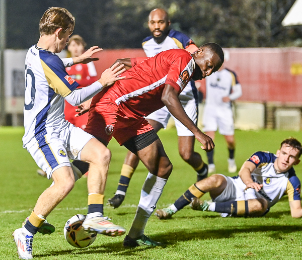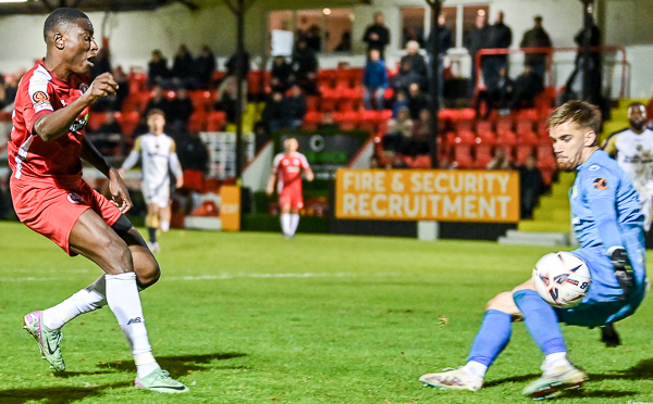 Seven minutes remained when Alex Lankshear headed home after Dudzinski could only palm out a cross. Welling upped the tempo and the Havant goalkeeper did well to smother from Chukwu before he pulled off a wonder save deep into stoppage time with the Wings’ striker again being thwarted.
