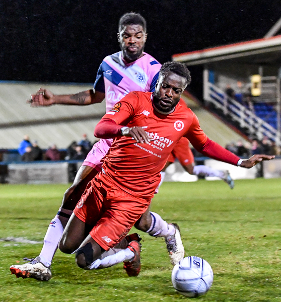 Half time loomed when Welling again came close. An outrageous turn by Ade Shokunbi, on the touchline, left Taylor floundering as he burst to the bye-line. He then fired across the six yard box with a delivery begging for a touch but it was just out of the reach of the Welling strikers.