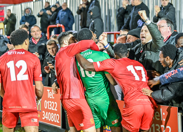 Having twice held the lead, Danny Bloor’s Welling team had to go through the stress of a shoot-out to prevail at the J. Hearnden Skip Hire Community Stadium.