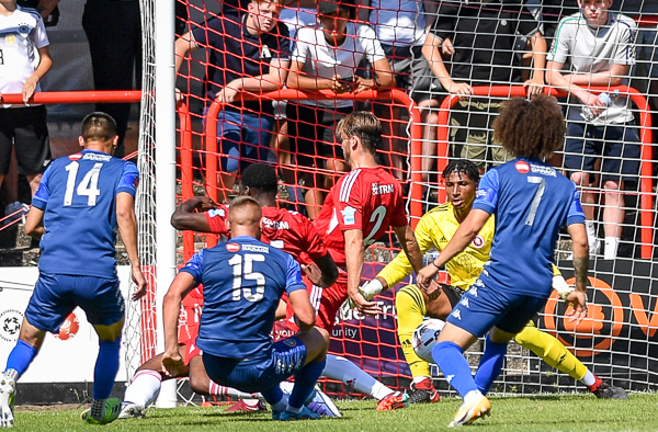 Kane Wills fired a long range shot that Myles Roberts held well, then Ollie Pearce shot on the turn, but it went wide. After nineteen minutes, Worthing regained the lead. Lewis White was given time to bring it down and his effort went through a crowded six yard box and into the net.