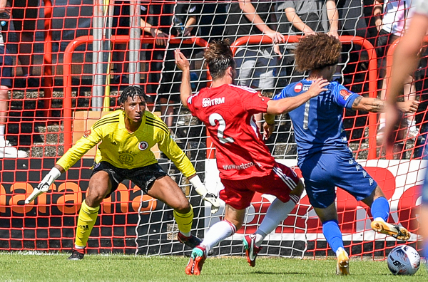 Surprisingly at four-two up, Worthing only left two at the back when they won a corner, despite Welling leaving two up, and they almost paid for it when the corner was cleared to Nzala. He burst away and skinned his man but fired over the near post.