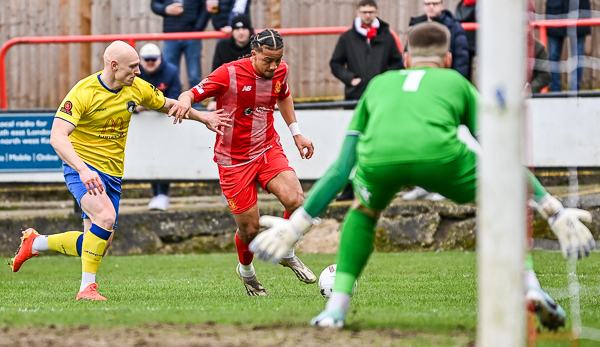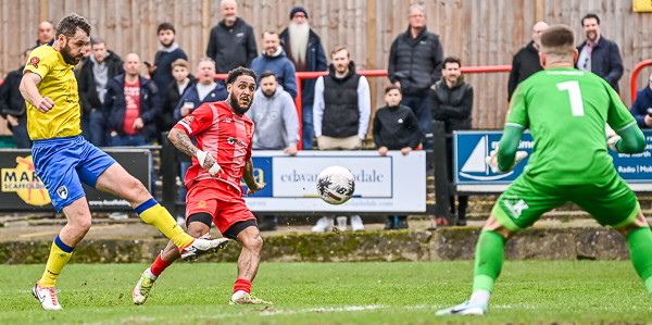 Reid hit a shot that was going wide but took a deflection for Weston’s first corner of the afternoon. Grubb delivered to the near post where he picked out Dodd who could only flick it first time wide. Green then stabbed an effort beyond the far post before Weston’s quick passing game pushed Welling back and forced them to defend hard.
