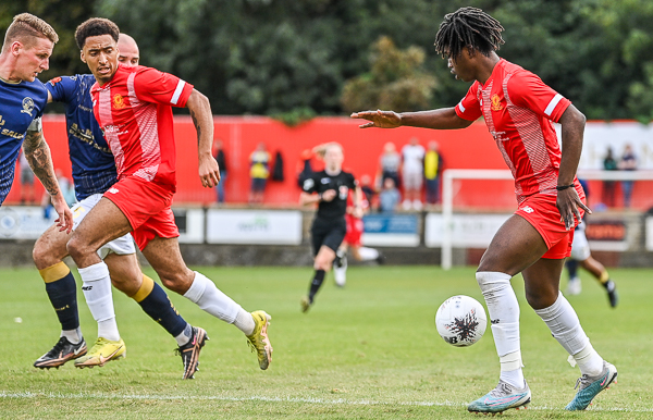 Jephte Tanga had Welling’s first chance when throwing himself at White’s deep cross but he didn’t get a clean connection with his header and Havant goalkeeper Ross Worner was able to tidy up.