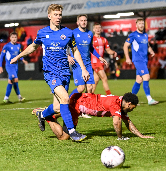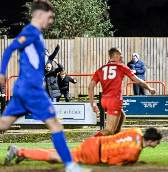 Two minutes later, Welling went ahead when breaking quickly from a Truro corner. Jason Adigun led the break and suddenly Welling had a three versus two break. Adigun timed his pass to Grant to perfection and he slanted it across for Fish to score his fourth goal in four games, and his first that was not in stoppage time.